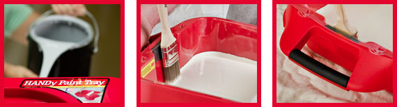 Make your large painting jobs easier with the durable HANDy Paint Tray. It has a deep well that can hold a full gallon of paint or stain, built-in magnetic brush holder and roller grid, as well as ergonomic handles that make for convienient, easy, spill-free transporting.